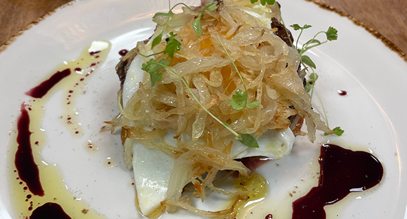 - Garnished with pomme fondant, micro parsley, Maldon sea salt and extra virgin olive oil.