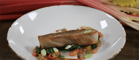 This dish takes rhubarb back to its original birthplace, earliest known records date back to 2700BC in China where it was cultivated for its medicinal purposes. Replacing the tomatoes in the sweet and sour sauce with rhubarb brings its own sourness to the dish without the need of using as much vinegar as a classic recipe. This dish could be used on a gastro pub menu as a main course or even a smaller version as a starter.